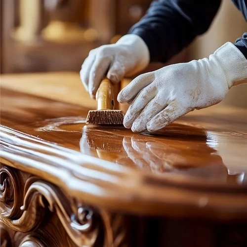 Polishing refers to the procedure of applying specialized polishes or finishes to wooden furniture, in order to protect it from different damages and make it last long. It also enhances the look of items and can be used for restoring their shine and to get rid of scratches, stains or other imperfections.