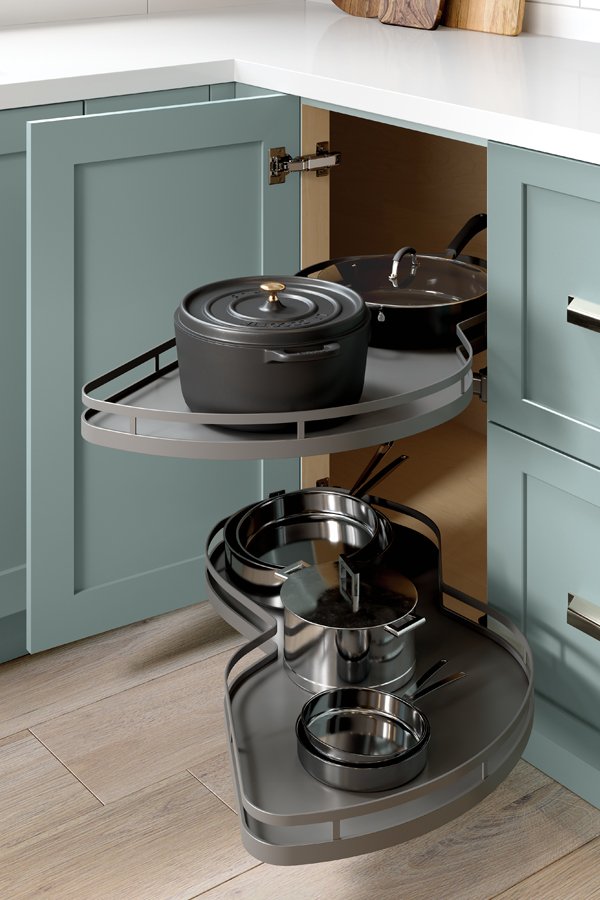 Transform corner storage with the Affinity Lemans Corner Pullout Cabinet, featuring smooth, swing-out shelves for full access. Its innovative design maximizes hard-to-reach spaces while keeping items organized. Built for durability and ease, it offers a practical and stylish solution for modern kitchens.