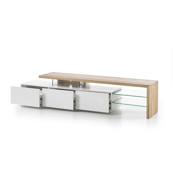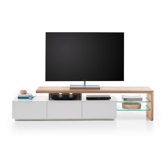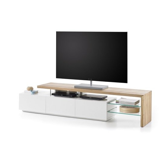 Alanis Wooden TV Stand With Storage In Knotty Oak And Matt White