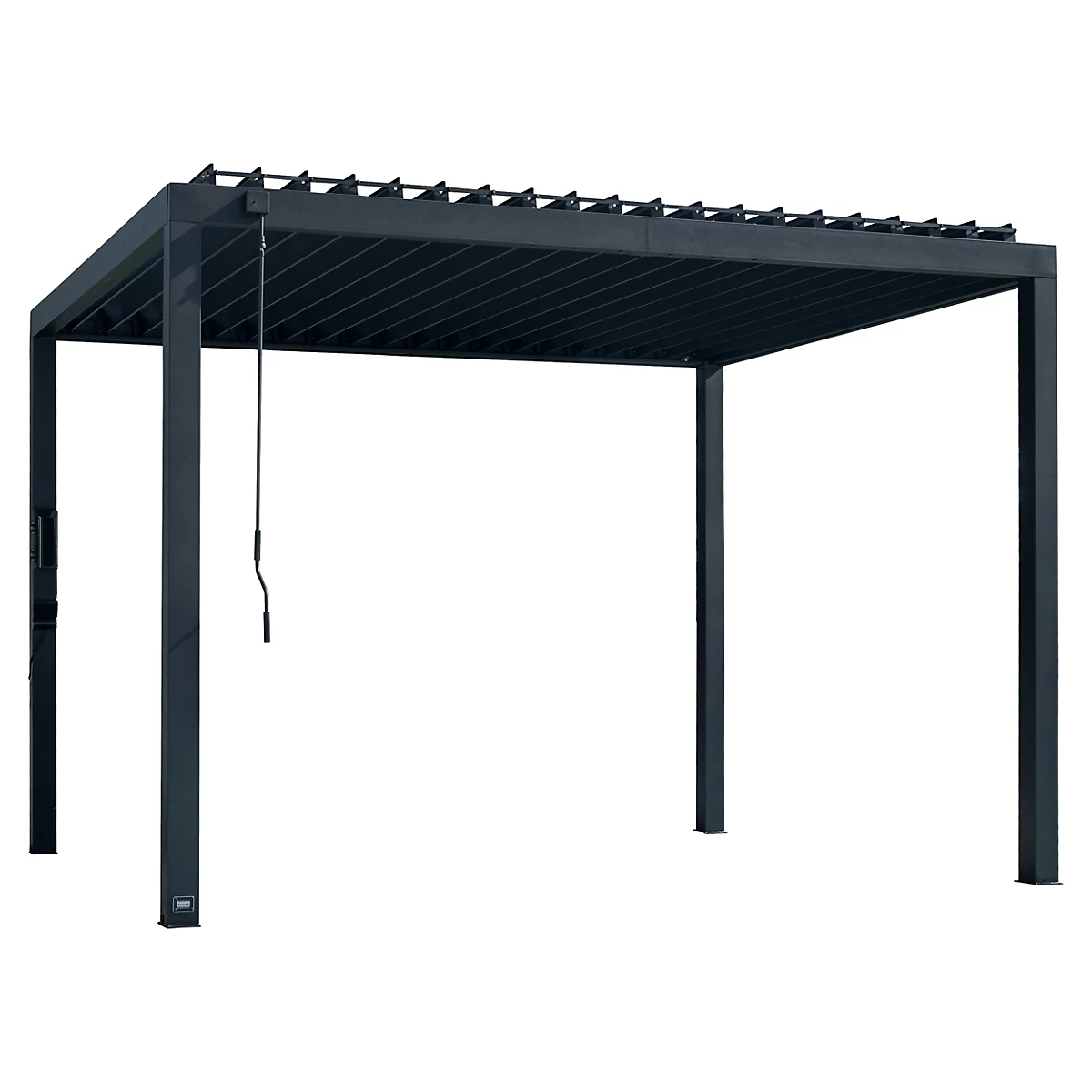 | Material | Powder-coated steel frame with adjustable louvered roof |
